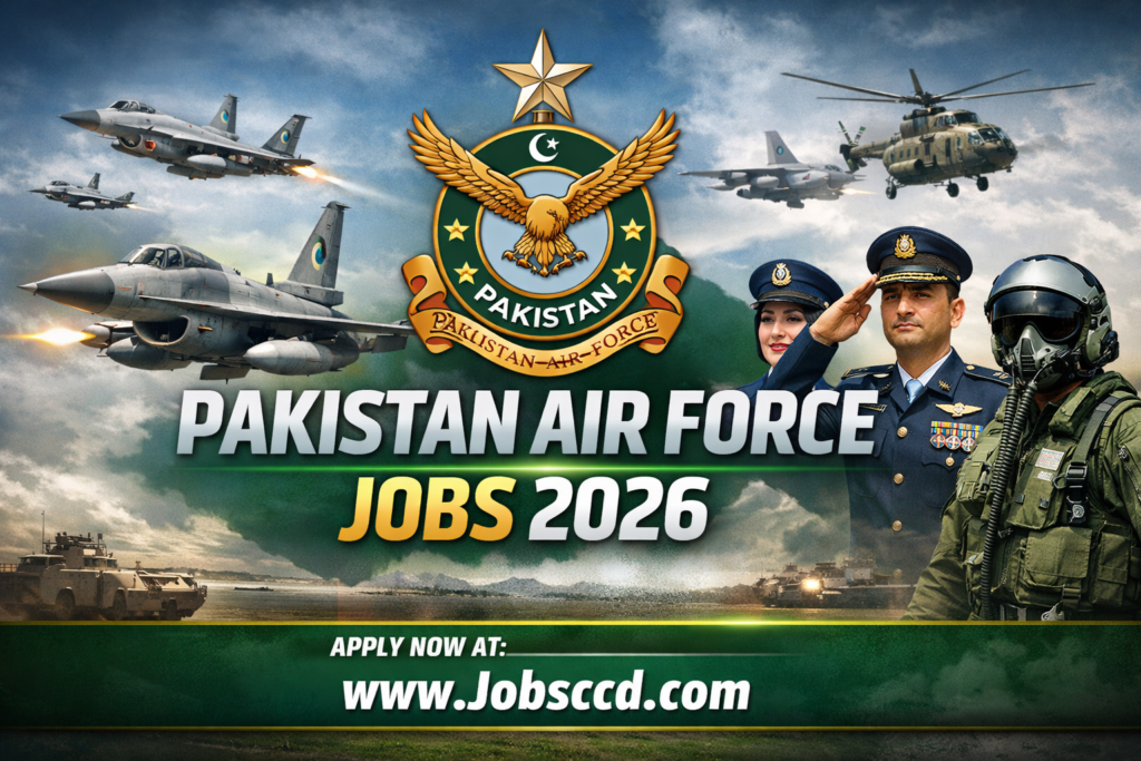 JoinPAF.gov.pk Jobs are official recruitment opportunities announced by the Pakistan Air Force (PAF) through its website. Candidates can apply online for positions like Airman, Commissioned Officer, Civilian Staff, and Medical Branch by visiting the official portal and completing the registration process.